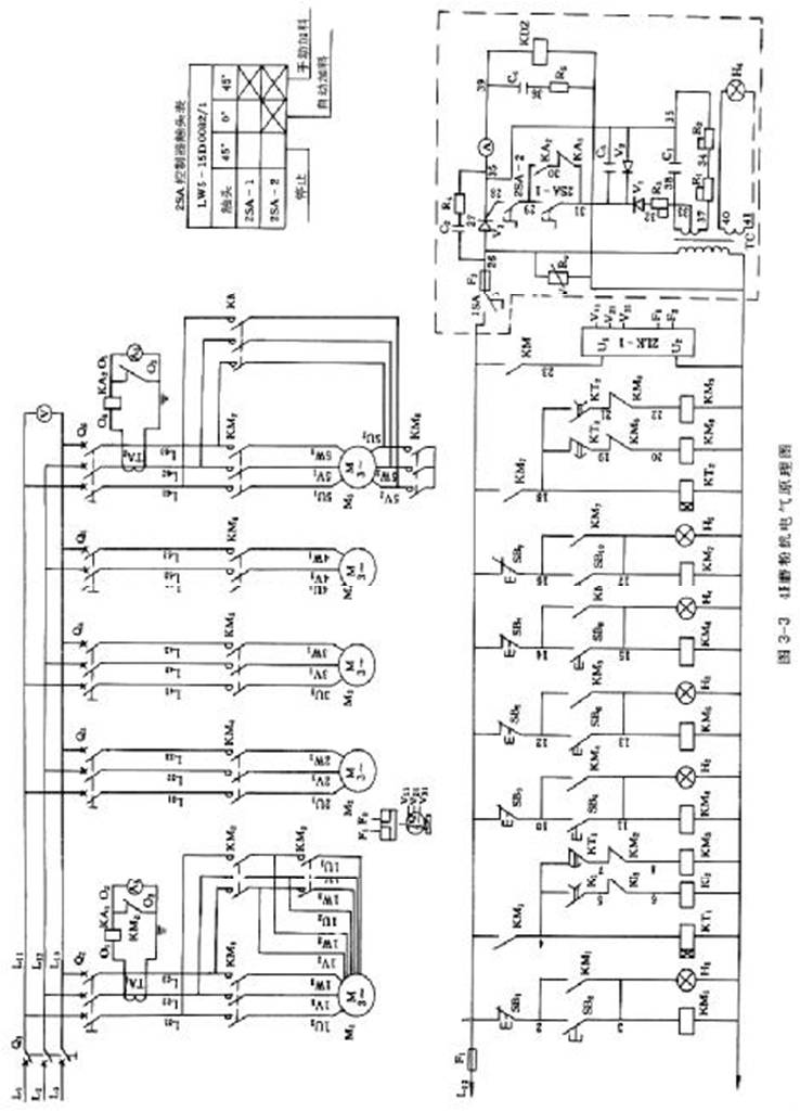 電機、電磁振動給料機及分級機的常見故障及排除方法見表3-1,3R、4R 和 5R磨粉機電氣原理分别見圖3-2、圖3-3和圖3-4。